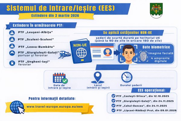 Începând cu data de 2 martie 2026, Sistemul de Intrare/Ieșire (EES) al Uniunii Europene va deveni operațional și la punctele de trecere a frontierei: