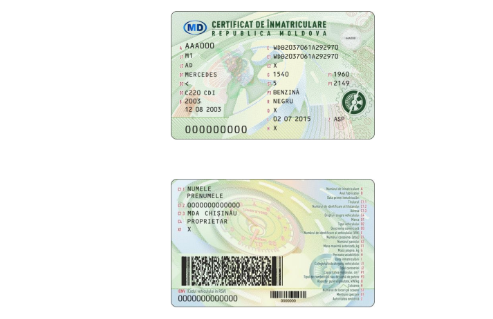 În prezent, în Republica Moldova sunt utilizate patru modele de certificate de înmatriculare: din anii 1995, 2012, 2015 și 2022.