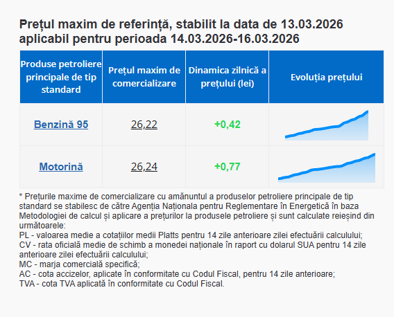 ANRE anunță că va continua să monitorizeze cu atenție situația și evoluțiile de pe bursele petroliere internaționale, asigurând consumatorii că actualul mecanism de formare a prețurilor este unul extrem de transparent și corect, reflectând fidel tendințele globale.