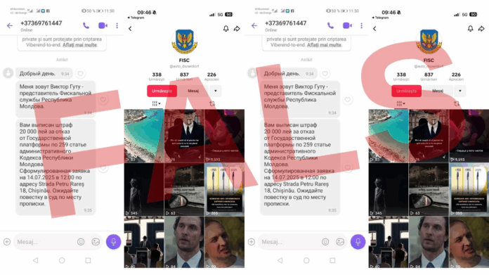 Acestea pretind că destinatarii au fost amendați cu 20.000 de lei, invocând articole inexistente din Codul administrativ și indicând o adresă falsă, care nu aparține niciunei subdiviziuni SFS.