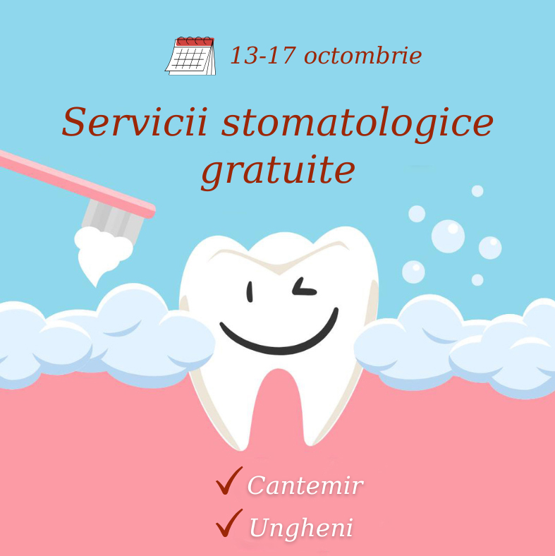 Copiii din raioanele Cantemir și Ungheni vor beneficia în această săptămână de consultații stomatologice profilactice gratuite, oferite de echipe mobile de medici, anunță Compania Națională de Asigurări în Medicină, transmite MOLDPRES.