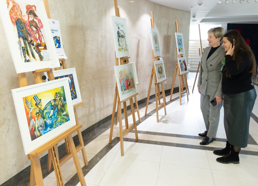 La Parlament a fost deschisă o expoziție cu 35 de caricaturi realizate de elevi din mai multe licee din Chișinău. Lucrările surprind fenomene, evenimente și personaje istorice și au fost selectate în cadrul concursului municipal interdisciplinar „Satira comentează istoria”, organizat de Liceul de Creativitate și Inventică „Prometeu-Prim”.