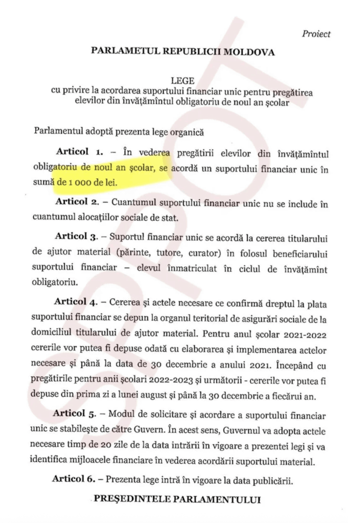 În 2025, într-un an cu miză electorală, PAS a decis să revină la această propunere. Potrivit anunțului, peste 295.000 de copii vor beneficia de sprijinul financiar, care va fi oferit prin Casa Națională de Asigurări Sociale, între 2 și 5 septembrie, direct pe cardul unuia dintre părinți.