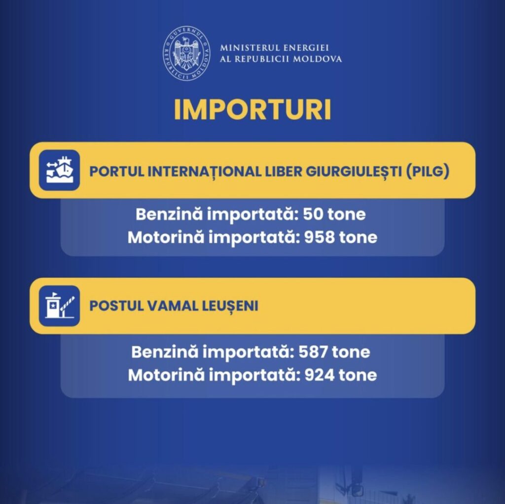 Conform Ministerul Energiei al Republicii Moldova, în aceeași zi, rezervele de combustibil acopereau circa 19 zile de consum pentru benzină, 18 zile pentru GPL și 11 zile pentru motorină.