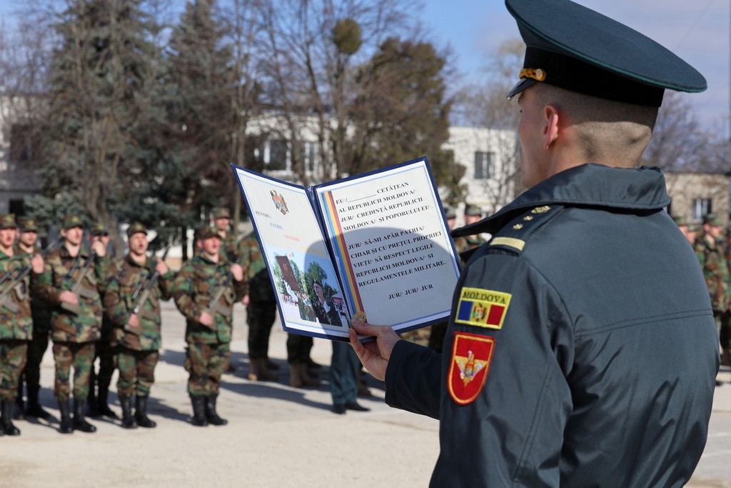 În timpul ceremoniei, soldații au rostit jurământul militar prin care s-au angajat să servească Republica Moldova și să își îndeplinească cu responsabilitate datoria militară.