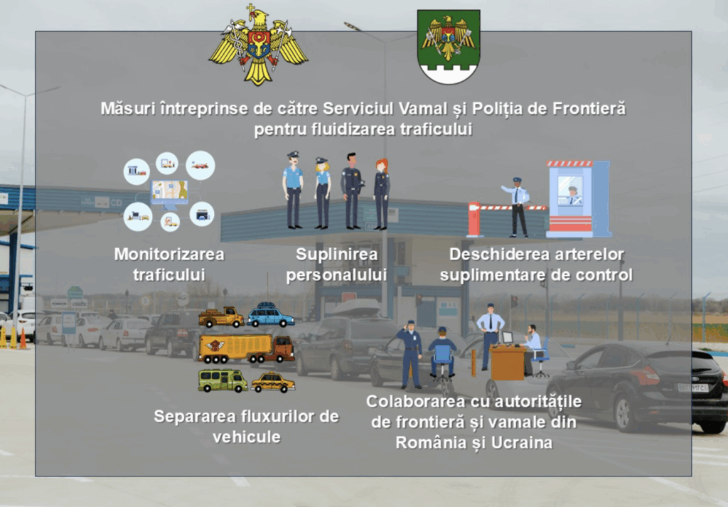 Pentru a reduce aglomerația, a fost suplinit personalul de control, s-au deschis artere suplimentare, iar în zonele cu trafic intens se aplică procedura „Revers”, redirecționând sensurile de circulație. De asemenea, fluxurile de transport sunt separate – camioane, autoturisme și autocare – pentru o organizare mai eficientă.
