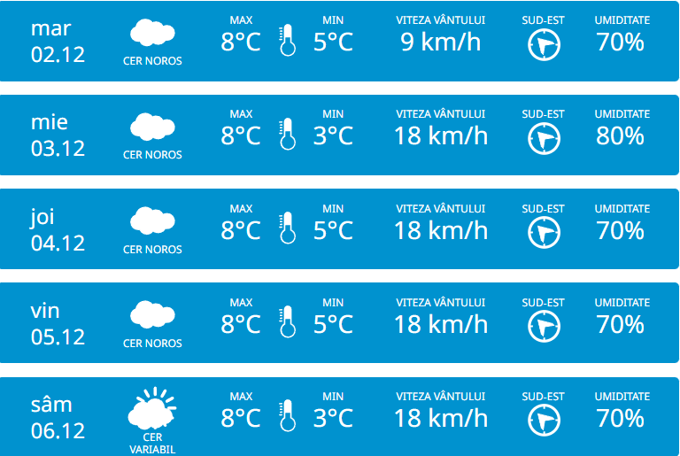 În Sudul țării, vom avea parte de +10 de grade pe timp de zi, iar noaptea vor fi minim +6 grade.