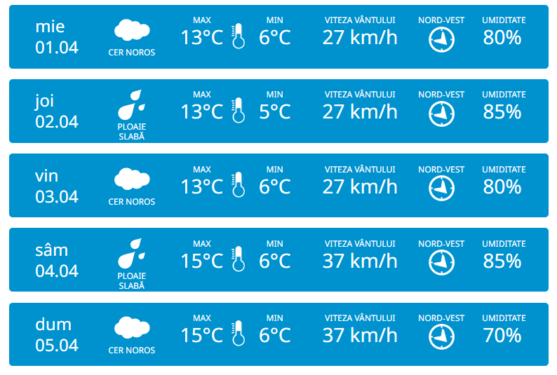 În Capitală, maximele se opresc la +15 grade, iar noaptea vom avea în jur de +7 grade.