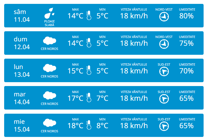 În Sudul țării, vom avea parte de +11 grade pe timp de zi, iar noaptea vor fi minim +5 grade.