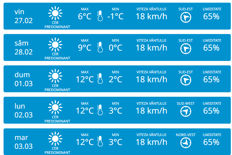 Serviciul Hidrometeorologic de Stat anunță pentru miercuri, 25 februarie vom avea parte de cer variabil și fără precipitații esențiale pe tot teritoriul Republicii Moldova. Vântul va sufla slab din nord-vest cu 27 km/h. Potrivit meteorologilor, temperaturile vor ajunge până la +4 grade în timpul zilei, iar noaptea vor coborî până la -3 grade.