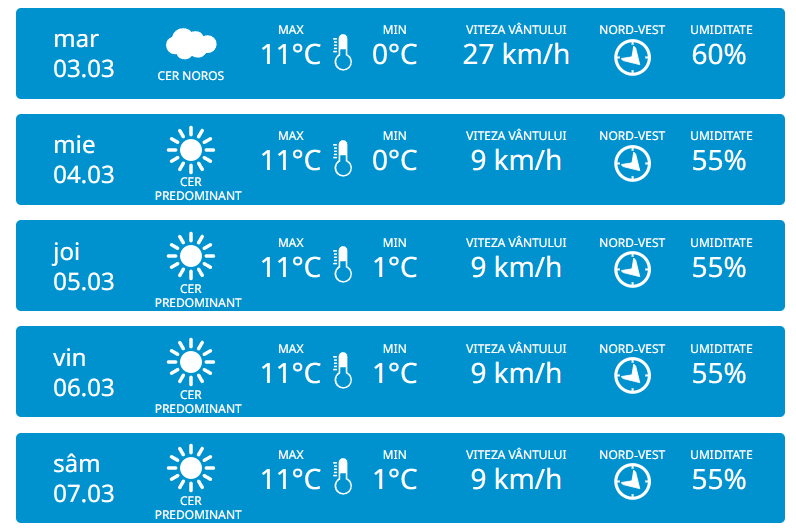 La Nord, temperaturile maxime vor ajunge până la +7 grade, iar noaptea coboară până la -3 grade.