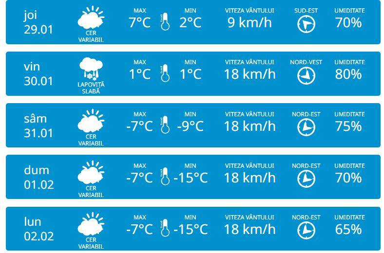 În Sudul țării, vom avea parte de +5 grade pe timp de zi, iar noaptea vor fi minim +2 grade.