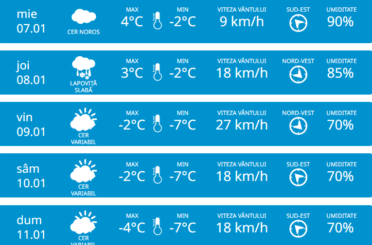 La Nord, temperaturile maxime vor ajunge până la +1 grade, iar noaptea coboară până la -3 grade.