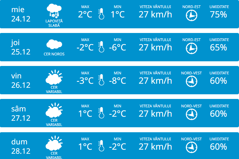 În Sudul țării, vom avea parte de +5 de grade pe timp de zi, iar noaptea vor fi minim +2 grade.