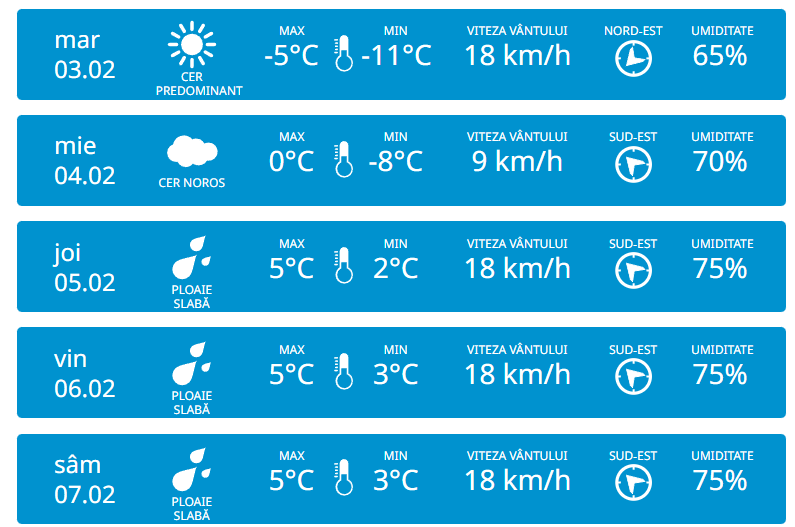 Serviciul Hidrometeorologic de Stat anunță pentru luni, 2 februarie vom avea parte de cer și fără precipitații pe tot teritoriul Republicii Moldova. Vântul va sufla moderat din nord-est cu 18 km/h. Potrivit meteorologilor, temperaturile vor ajunge până la -7 grade în timpul zilei, iar noaptea vor coborî până la -16 grade.