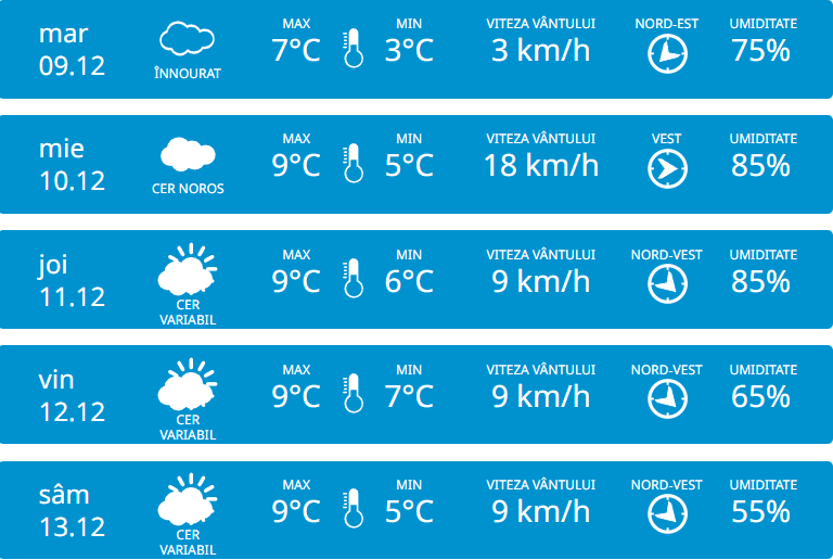 În Sudul țării, vom avea parte de +7 de grade pe timp de zi, iar noaptea vor fi minim +4 grade.