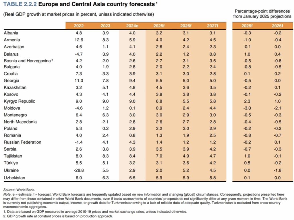 În ansamblu, regiunea ECA (Europa și Asia Centrală) este așteptată să atingă o creștere de 2,4% în 2025, în pofida provocărilor externe.