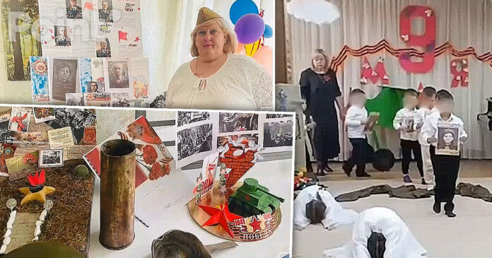Fotografiile au fost postate în ziua comemorării victimelor celui de-al Doilea Război Mondial. În imagini, educatoarea apare alături de simboluri considerate propagandistice, expuse în incinta grădiniței.