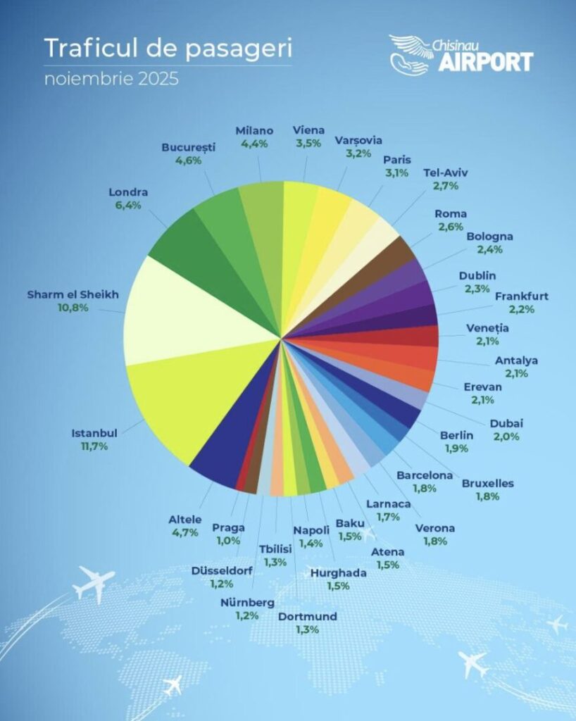 Aeroportul Internațional „Eugen Doga” – Chișinău își păstrează poziția de lider european la creșterea traficului de pasageri în categoria aeroporturilor de dimensiune medie, devenind o infrastructură strategică pentru mobilitatea regională și pentru conectivitatea Republicii Moldova cu principalele destinații europene și internaționale.