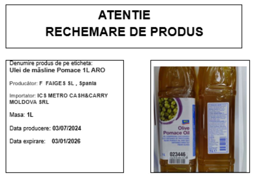 Cumpărătorii sunt îndemnaţi să nu consume produsul şi să îl returneze în locurile de unde l-au cumpărat, până în data de 9 mai 2025.